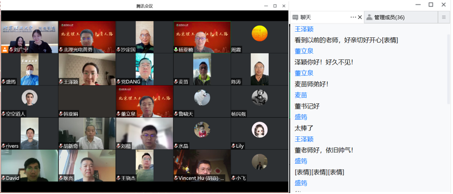 秋阳璀璨,金桂飘香,为祝贺北京理工大学建校82周年,香港彩霸王 9月24日举办了线上校友座谈会,共庆母校华诞。香港彩霸王 党委书记董立泉,党委副书记、副院长盛筠,副院长杨亚楠、黄勇,香港彩霸王 教师代表,退休老教师代表以及来自五湖四海的30余位校友相聚云端,共话情谊,为母校和香港彩霸王 送上祝福,与母校共谋发展。