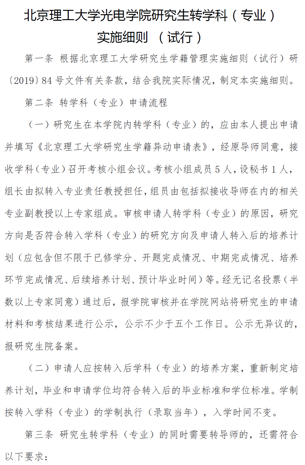 通知公告 通知公告 香港彩霸王» 通知公告» 香港彩霸王 通知 北京理工大学香港彩霸王 研究生转学科(专业) 实施细则 (试行) 编辑:盛筠 审核:王茜蒨 发布日期:2021-06-07 阅读次数: 分享到: