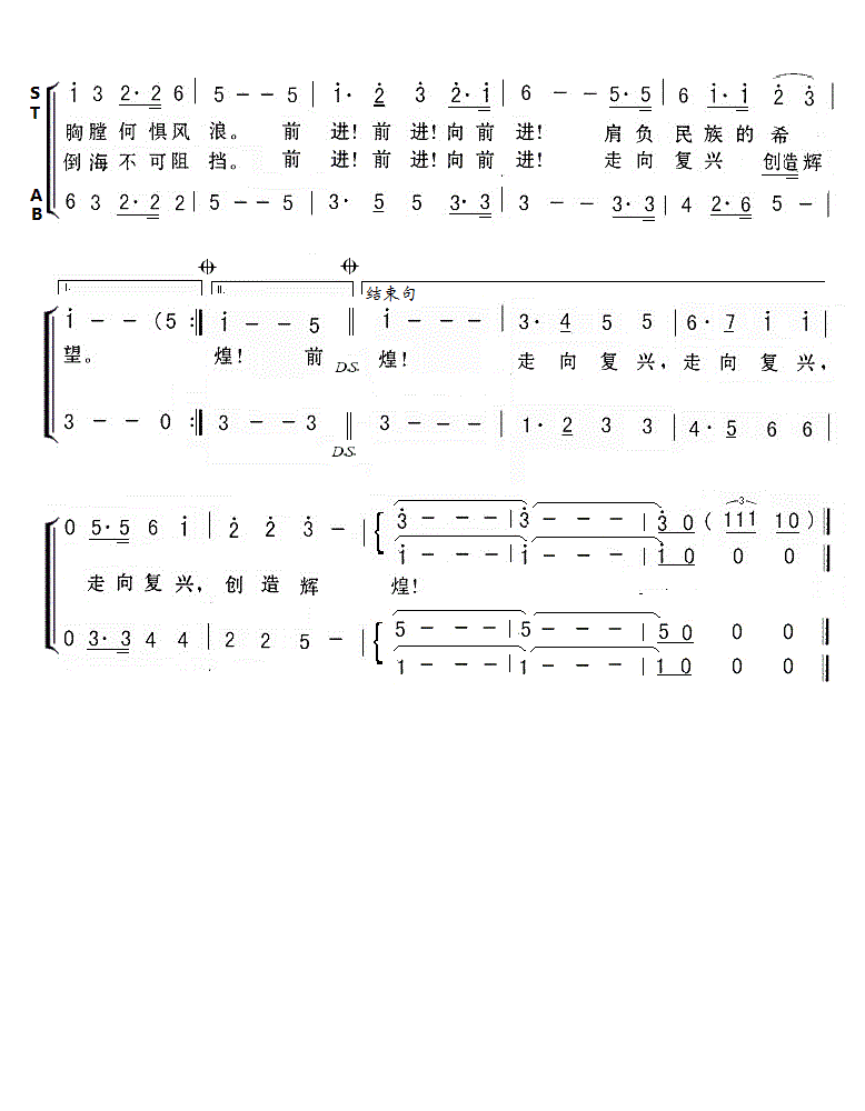 通知公告 通知公告 香港彩霸王» 通知公告» 香港彩霸王 通知 一二九合唱音乐及谱子 发布日期:2013-11-10 阅读次数: 请所有合唱人员下载练习。新增曲目《中国龙》请在周五晚上18:30之前听熟,至少能跟唱。 附件: 中国龙.mp3 中国龙-乐谱.jpg 走向复兴2.gif 走向复兴1.gif 总政合唱团-走向复兴.mp3 分享到: